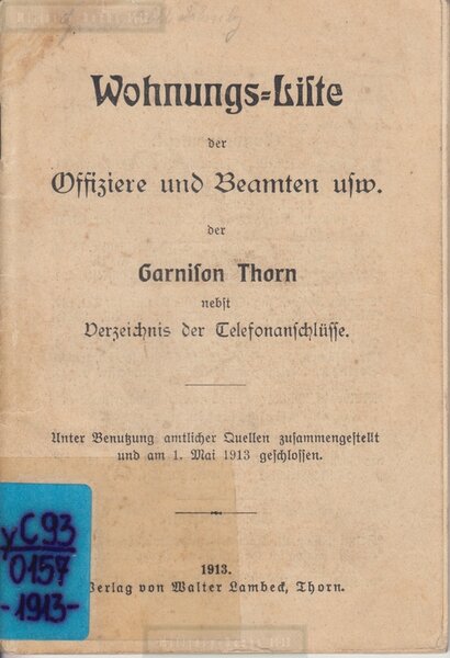 Eigenverlag - Wohnungsliste Offiziere Beamte 1913