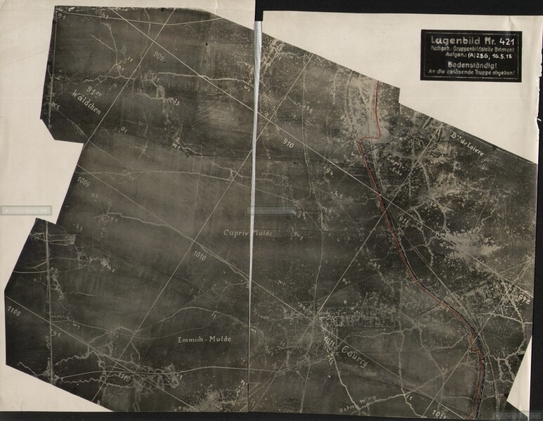 Picture shows : vicinity east of Reims along the old roman road (Alte Römer Straße) found at the southern part of the picture. you can see Les Marquises Ferme , Pestbeule , rote Häuse , Fasanenwald , Langer Rücken , Schwarzwald , Herrenwald and much more
